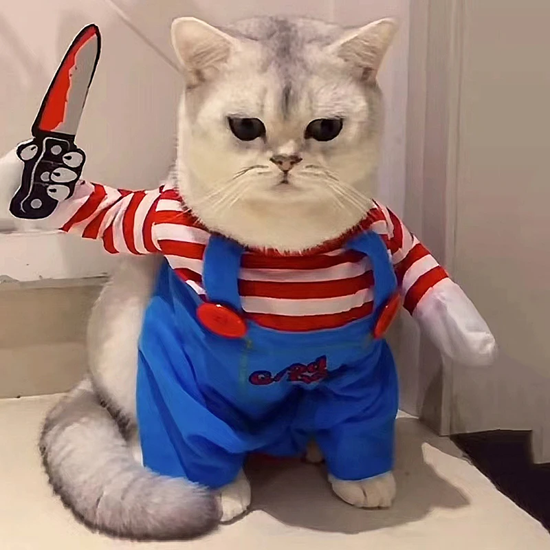 Funny Cat Clothes Halloween Cosplay Costumes For Small Medium Dog Cats Creative Pet Party Kitten Jumpsuits Soft Warm Cat Coat